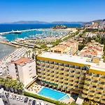 Con un ristorante, il Palm Hotel Kusadası, a 4 stelle, si trova a 500 metri dalla Marina di Kusadasi. Situato a 3 km dalla Spiaggia delle signore di Kusadasi, l'hotel vanta una piscina.